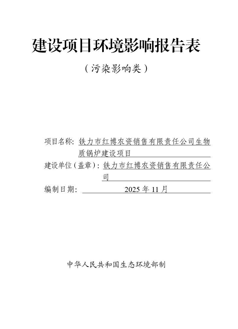 鐵力市紅博農(nóng)資銷售有限責(zé)任公司生物質(zhì)鍋爐建設(shè)項目環(huán)境影響報告表